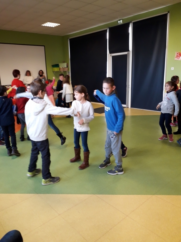 Chaque lundi matin, du 5 novembre au 17 décembre 2018, Marie-Annick venait nous apprendre des danses bretonnes. Elle en profitait pour nous présenter des costumes bretons et des instruments. A la dernière séance, chaque classe a présenté aux autres ce qu’elle avait appris. C’était très bien!
