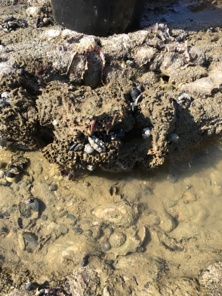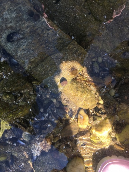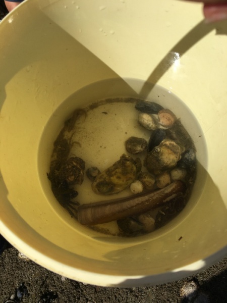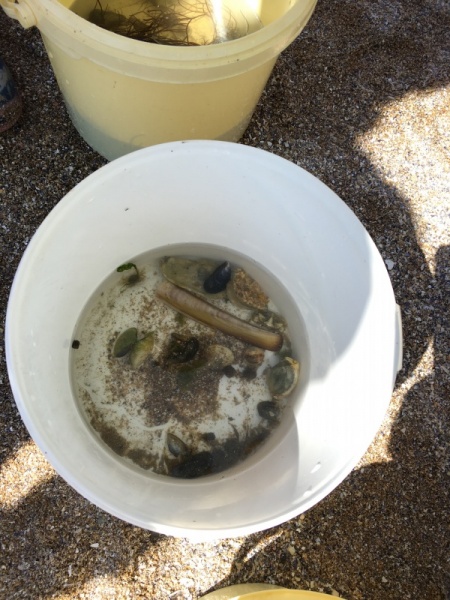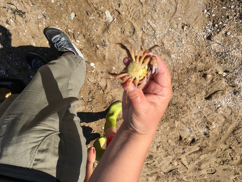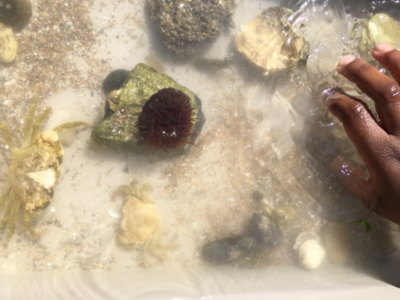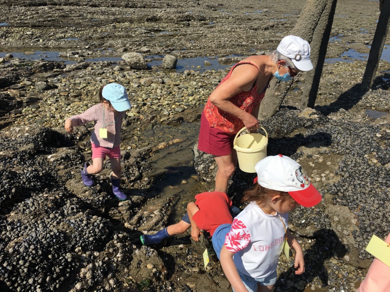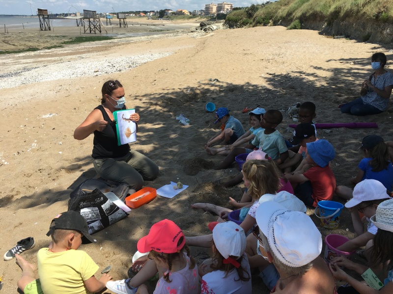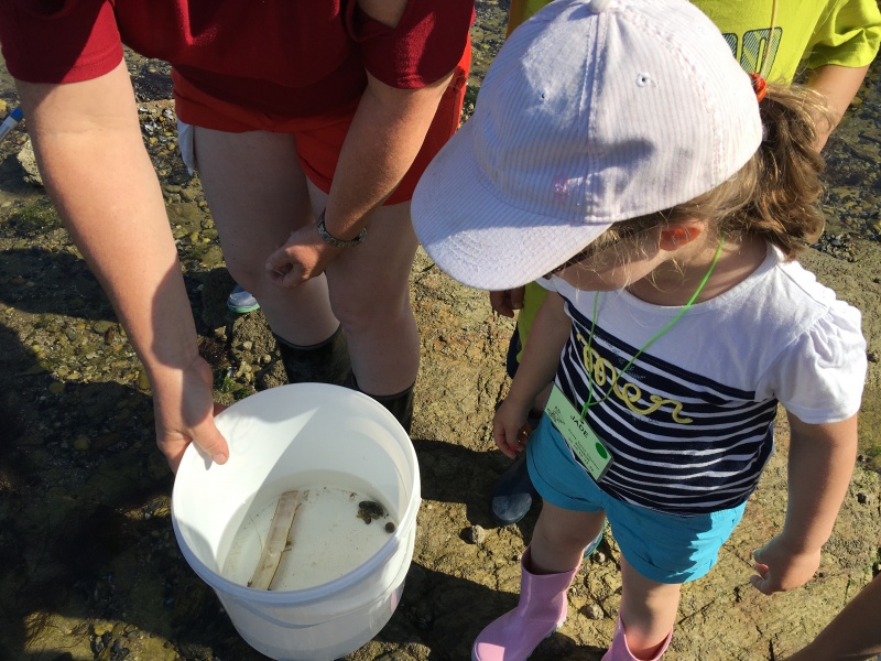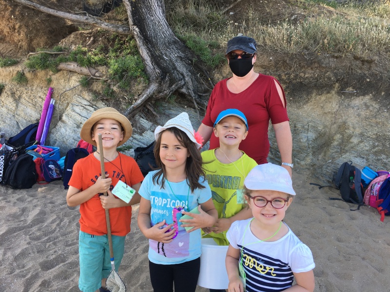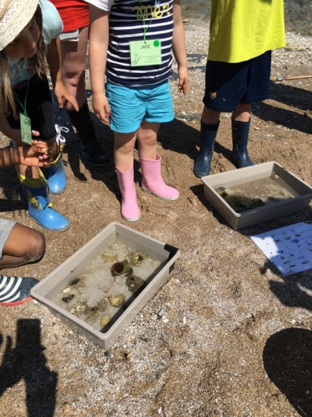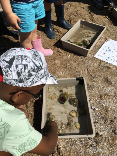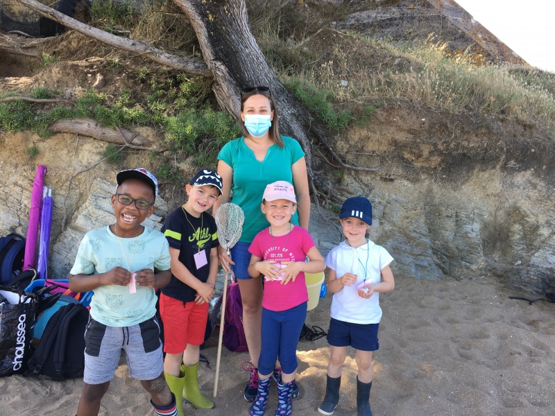 Vendredi 11 juin, nous sommes allés à la plage à Tharon pour découvrir les animaux marins et les trésors de la laisse de mer à marée basse. Le matin, nous avons pêché dans les petites mares au milieu des rochers avec nos mains, une épuisette et un seau. Puis nous avons observé les animaux de notre pêche dans des bacs : des crevettes, des petits poissons, des anémones, beaucoup de crabes de toutes les tailles, des coquillages différents, des petits vers… Nous avons également observé les goélands, mais ils s’envolaient dès qu’on les approchait.