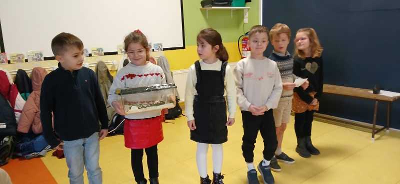 Les PS-MS ont expliqué la réalisation d’un photophore, les MS-GS ont montré leur plantation de bulbes, les CP ont apporté leur élevage de phasmes. Les CE1-CE2 nous ont fait observer des illusions d’optique. Les CE2-CM1 ont présenté leur cahier de sciences et nous ont expliqué que la terre tournait autour du soleil et sur elle-même. Les CM2 ont cité leur exposé sur des thèmes scientifiques, ont parlé de la station météo et ont réalisé une expérience !