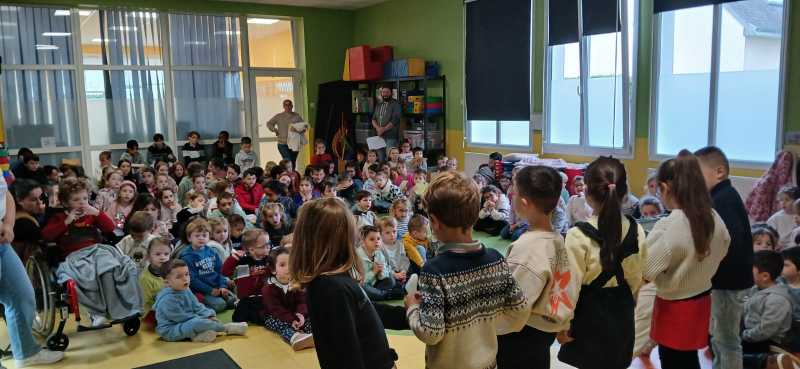 Le lundi 15 décembre 2025, nous avons fait une assemblée d’école dans la salle de motricité.