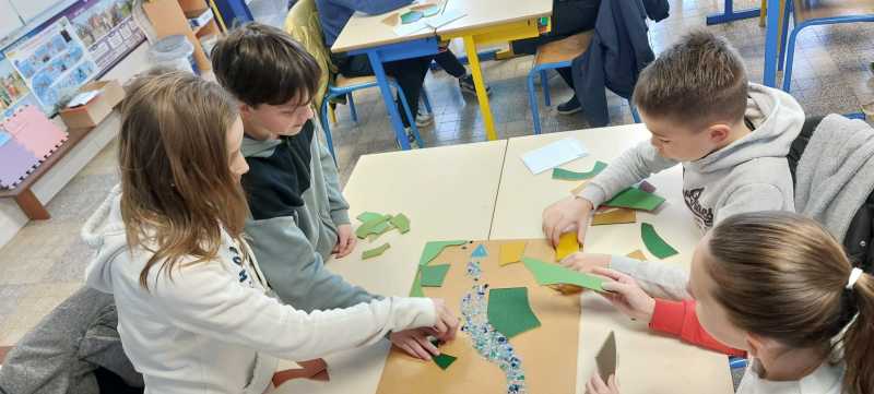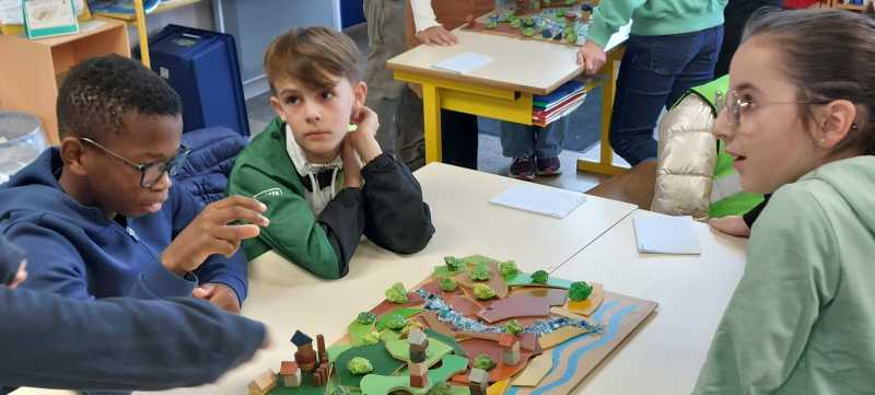 « Nous avons fait des maquettes pour voir les différents cours d’eau. On a placé des matériaux comme les routes, les habitats, la végétation, des ponts. On a assemblé toutes les maquettes pour faire un grand cours d’eau qui se jette dans la mer. »