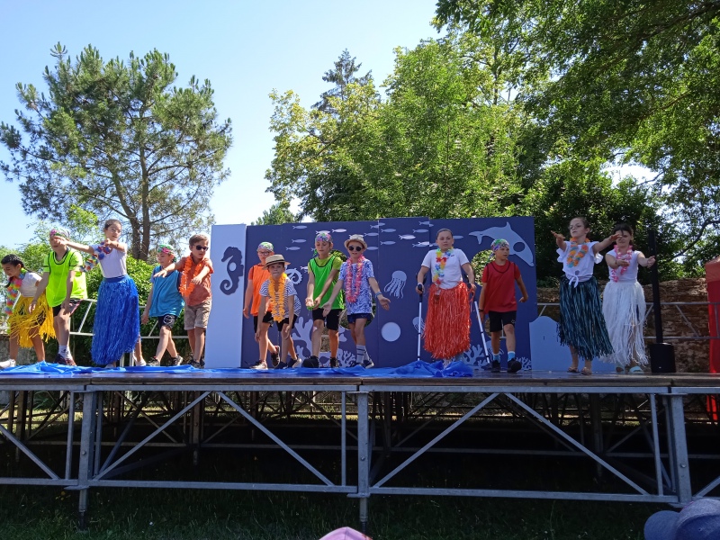 La fête de l’école a eu lieu le dimanche 25 juin. Les enfants ont présenté un spectacle sur le thème de la mer. Du bleu, des rayures marines, des colliers de fleurs, des serviettes de bain, des planches de surf, des foulards au vent ont illustré les danses ! Les CM2 ont évolué sur 3 morceaux pour leur dernière fête : Yellow submarine, Sous l’océan et Amazing Grâce du Bagad de Lann Bihoué.