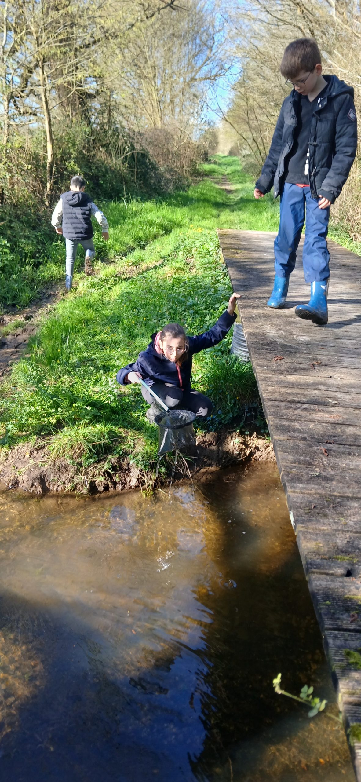 Le mardi matin 17 mars 2026, nous, les CM2, sommes allés au ruisseau de Basse-Ville avec Yann du SDBV et Mélanie du Parc de Brière. Avec Mélanie, nous étions des naturalistes ! Nous avions des épuisettes et nous pouvions pêcher dans le ruisseau. Il fallait ensuite observer ce que nous avions pêché et identifier à partir